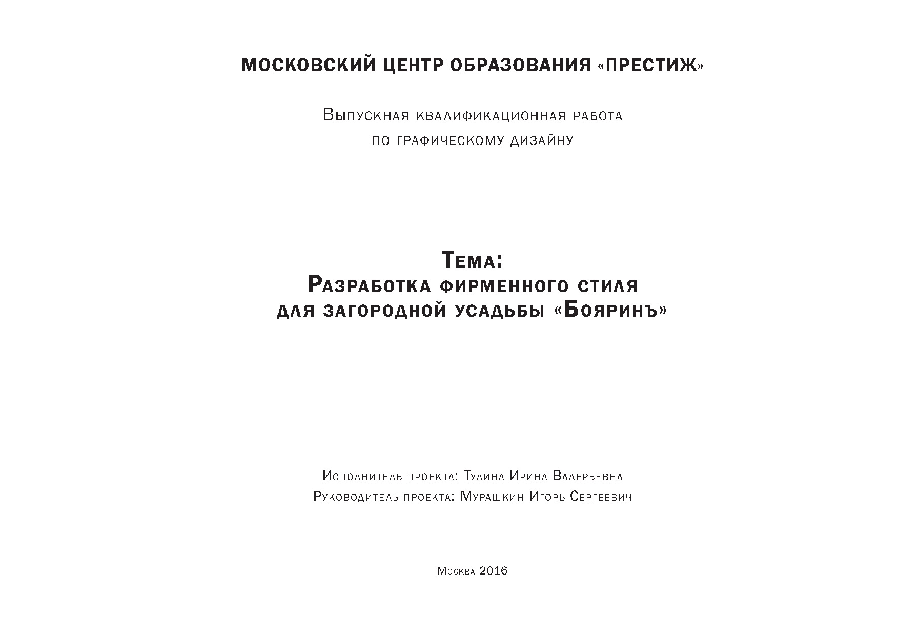 Разработка фирменного стиля для загородной усадьбы Бояринъ
